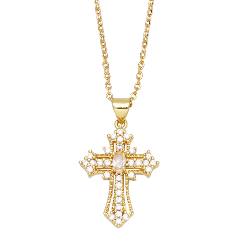 Illuminate your spirit with the divine elegance of our Gold Cross Necklace for Women, a radiant piece that gleams in a golden tone with clear stone inlay. The timeless beauty of this necklace extends beyond fashion, embodying a blend of modern sophistication and classic charm.
